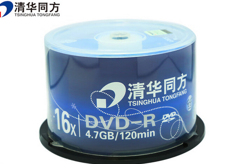 • 清华同方 DVD-R 光盘 空白光盘 丝羽 办公家用光盘 DVD-R刻录光盘 空白光盘 4.7G 50片桶装