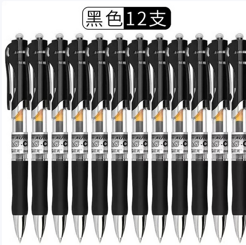 • 晨光/M&G k35 书写用笔类用具 碳素笔 按动中性笔0.5mm黑色签字笔k35子弹头碳素水性笔蓝色红色刷题办公会议黑色水笔 【黑色盒装】12支/1盒