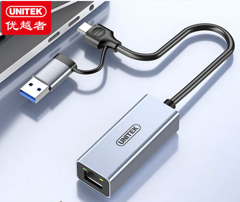 • 优越者 U1346C 网络连接设备 有线网卡 USB3.0转RJ45网线接口千兆有线网卡扩展坞外置网口转换器适用笔记本台式电脑免驱动二合一