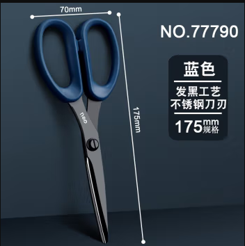 • 得力(测试用) 不锈钢剪刀 内蒙古融聚万赢商贸有限公司1663638197 剪刀 家用办公黑刃锋利美工剪子裁缝剪 77790丨蓝色丨中号-175mm
