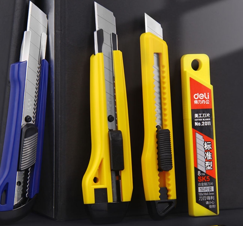 商品名称:得力/deli 2004 美工刀 大号美工刀 学生刀架 裁纸刀 壁纸刀 可换刀片 2004黄色【袋装】