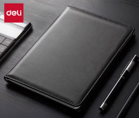 得力 7901 薄本册 皮面笔记本 25K-80页 黑色